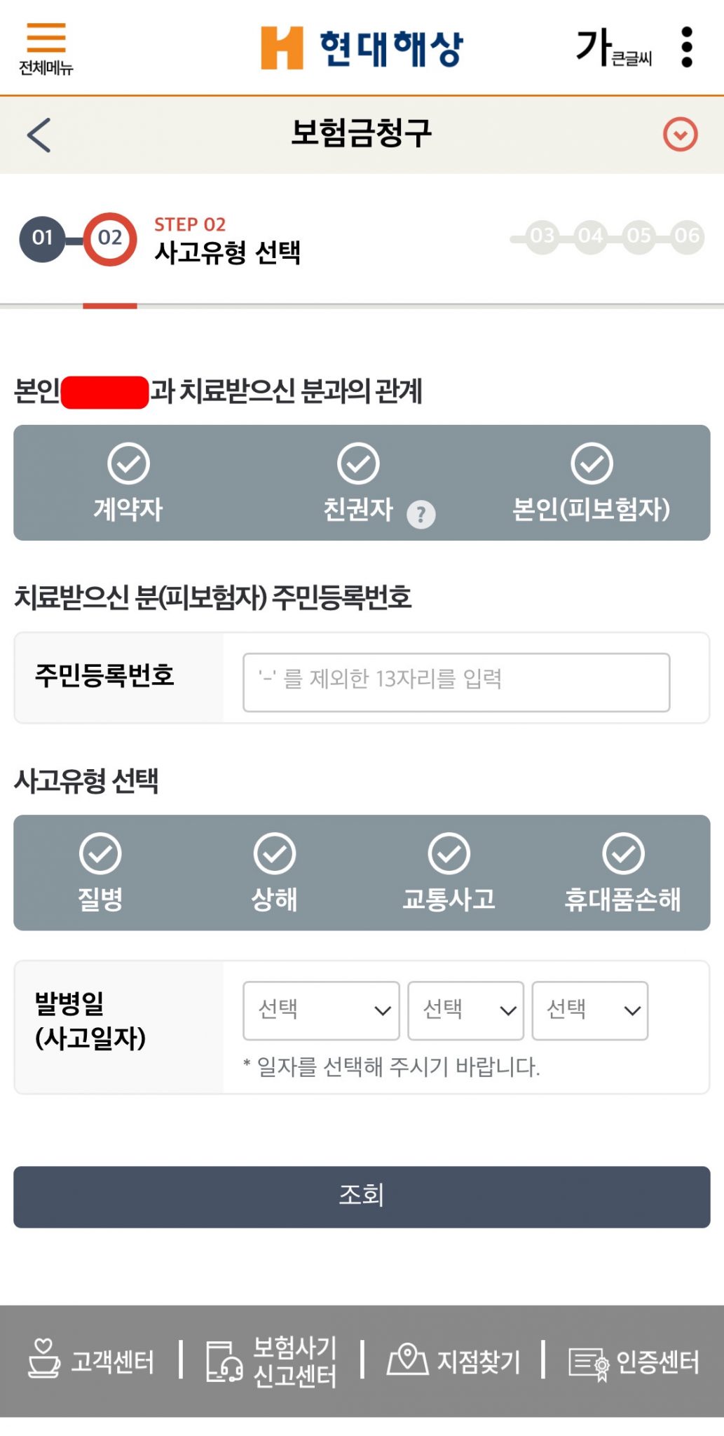현대해상 어플을 받고 어플을 실행합니다. 어플 실행 후 보험금 청구 버튼을 클릭합니다. 여러가지 메뉴들이 있는데 계약조회나 보험 관련 대출 안내도 받을 수 있는 메뉴들도 있습니다. 실비 청구를 하기 위해서는 어플리케이션 메뉴 중에서 보험금 청구 메뉴를 통해 진행이 되니 참고하시기 바랍니다. 아토피 보습제 제로이드 실비 청구를 위해서 로그인을 진행합니다.