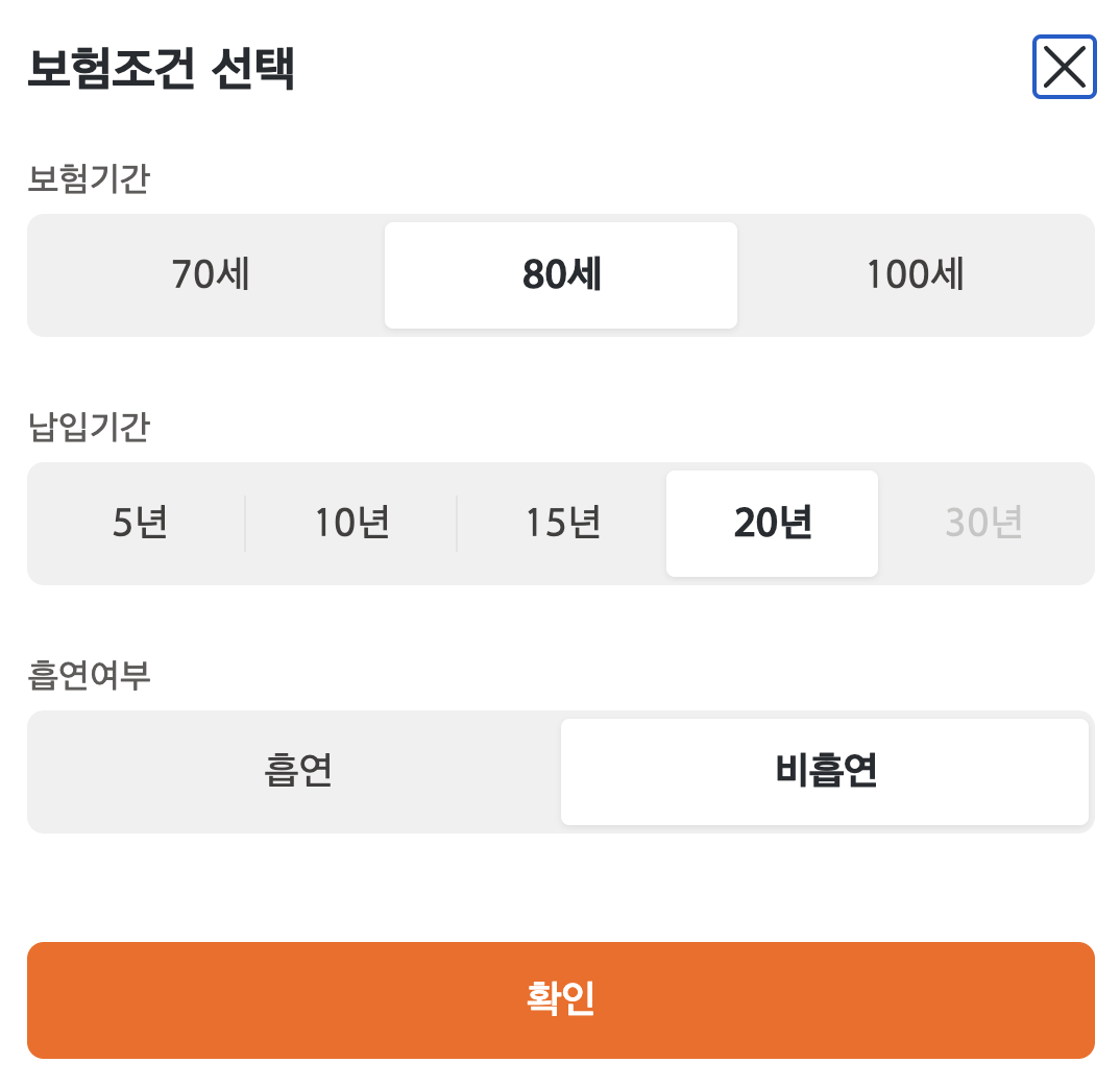 - 보험료 납입기간 : 5년, 10년, 15년, 20년, 30년